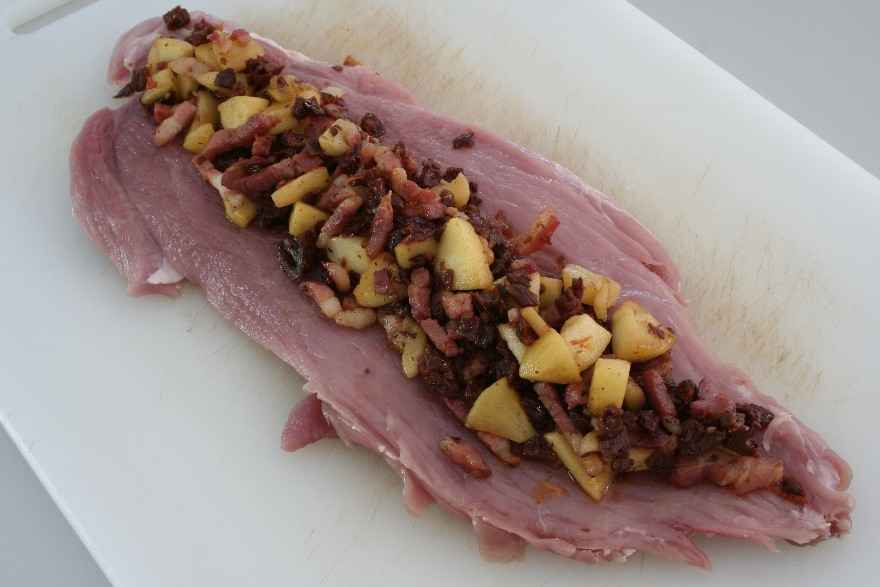 Fyldt svinemørbrad med æbler, bacon og soltørrede tomater billede nr. 1