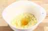 Margarine og sukker røres sammen, ægget tilsætte, og der piskes til massen er cremet.