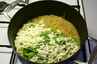 Tilsæt pasta, kål, bønner og ærter og lad det simre 10 minutter mere. Rør tomatpure og tomater i samt bacon og krydderier efter smag. Server parmesanosten til i en skål for sig. |
