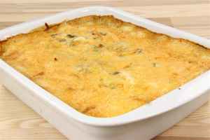 Peberfrugt i strimler (skåret på langs af frugten)svitses i meget varm olie (helst raps)lægges oven kødet. Champignon (rå eller ristet efter eget valg) i skiver lægges i fadet. Osten drysses over. Fløden piskes til skum og blandes med chilisaucen og massen hældes over som top på fadet. I ovnen ved 200 grader C. alm. ovn i 20-30 min. Tips: Serveres med ris og flutes. Smager himmelsk!! |