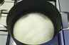 Sukkeret smeltes langsomt i en stor jerngryde.