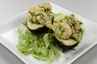 Skær avocadofrugten igennem, tag stenen ud og læg de halve avocadoer på serveringstallerkener. Fordel fyldet og pynt med lidt dildkviste. Serveres med ristet brød. Tips: Tilberedningstid: ca. 1 time, heraf ca. 30 min trækketid |