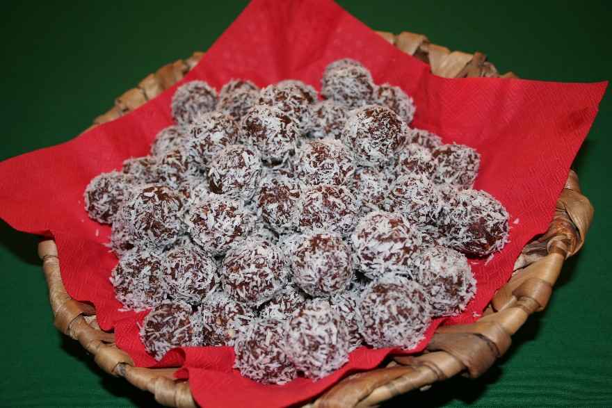 De trilles til kugler som rulles i kokosmel eller flormelis. |