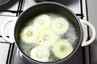 Kog vand, sukker og citronsaft sammen. Skræl æblerne, halvér dem, og fjern kernehuset. Læg æblerne i sukkerlagen, og damp dem knap møre (kan også gøres i mikroovn, ca. 3 minutter ved fuld effekt). Lad dem blive kolde i lagen.
