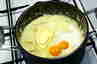 Blandes med æggeblommer, smør, mælk, salt og peber. Kan laves i forvejen. Lige inden den bages vendes stiftpiskede æggehvider i mosen. Et ovnfast fad (ca. 28x17) smøres og drysses med rasp og mosen fordeles heri. Bages i ovnen ved 250 grader C. alm. ovn på næstøverste rille i ca. 15 minutter til den er gylden. |