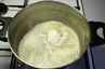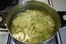 Den rensede kål deles i fire dele. Stokken fjernes. Kålen snittes og koges i letsaltet vand.