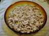 - hæld væsken fra rejer, asparges, og mandaringer. - aspargesen fordeles oven på kyllingen, sammen med halvdelen af mandarinerne, og halvdelen af rejerne. - snit agurken i tynde skiver, til pynt i skålen. Marinade: mayonnaise, creme fraiche, fransk sennep, røres sammen og den pisket fløde vendes forsigtigt i massen. og smages til med karry og salt. marinaden hældes over kyllingen ca. 1 time før den skal serveres, ellers bliver den for tynd. pyntes med agurk, rejer, mandariner. Tips: retten kan serveres med lune flutes. |