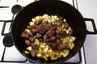 Skær kødet i tern og brun det med nelliker og stil det side.