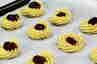 Dejen fyldes i en sprøjtepose med stjernetyld og sprøjtes ud som kranse på bagepapir. Kransene skal ikke have hul i midten som f.eks. vaniljekranse, men det gør ikke noget at der bliver et lille hul. I midten af kransene sættes en lille klat hindbærmarmelade, ca. ½ tsk. Bages ved 200 grader C. alm. ovn i ca. 10 minutter. |