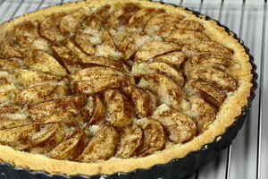 Læg evt. dejen i køleskabet nogle minutter inden du ruller dejen ud mellem 2 stykker vitawrap. Fjern det øverste stykke vitawrap og brug det nederste stykke til forsigtigt at flytte dejen over i en tærteform. Dejen er meget skrøbelig så det skal gøres forsigtigt. Tryk dejen ud i hjørnerne mens vitawrap stadig sider på. Fjern vitawrap og skær det overskydende dej af. Vi forbager dejen 5 minutter ved 200 grader C. Marcipanfyld: Rør smør, sukker, revet marcipan og æg til en ensartet masse som fordeles i bunden af tærten. Æblerne skrælles, kærnehuset fjernes og de skæres i tynde stykker som vendes i sukker blandet med kanel. Lægges taglagt over marcipanfyldet, evt. overskydende sukker drysses over æblerne. Tærten bages på næstnederste rille i en 200 grader C. alm. ovn i 35-40 minutter. |