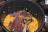 Først grovhakker I grøntsagerne, som skal steges i en smule olie, nok til at de ikke er tørre. Når løgene er blanke, tilsætter I leveren, som steges med grøntsagerne i ca. 15 min.