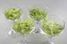 Fjern "flipstiverne" fra krabbekødet, skil det med en gaffel. Kom det i skålen med hakket blegselleri, radiseksiver og finthakket løg. Tilsæt eddike, citronsaft, salt og peber. Pisk dressingen sammen. Læg små salatblade (eller snittet salat) i 4 glasskåle. Fordel fyldet over og læg 1 skefuld dressing øverst. |