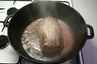 Brun okseklumpen i en gryde i lidt olie og smør. Tilsæt rødvin, vand salt og peber. Lad kødet småsimre ica. 2 timer. Vend det jævnligt.