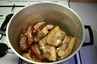 Kødet skæres i mindre stykker og brunes i fedtstof, når det er godt brunet tages det op.