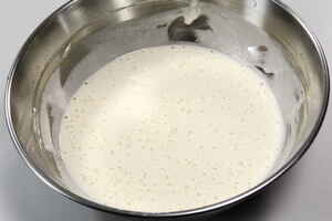 Pisk æggehviden stiv og kom den i med let hånd. Tips: Beignetdej kan bruges til rejer, fisk og grøntsager. Se opskrift på indbagte rejer Også Æblebeignet |